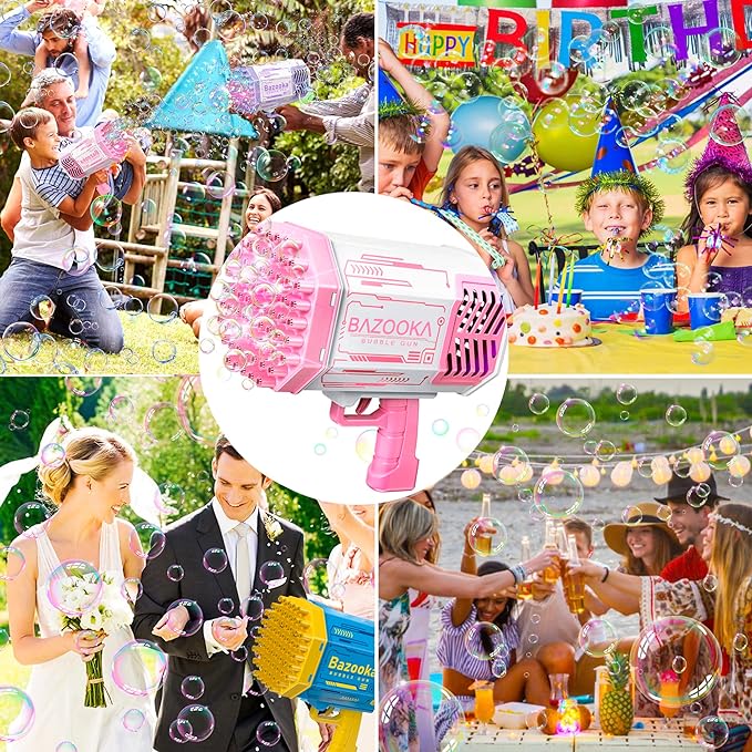 The bubble machine has colorful lights, just pull the trigger instantly and the bubble gun will fire a burst of colorful bubbles, which is very dreamlike and amazing. Create a wonderful atmosphere with ease.